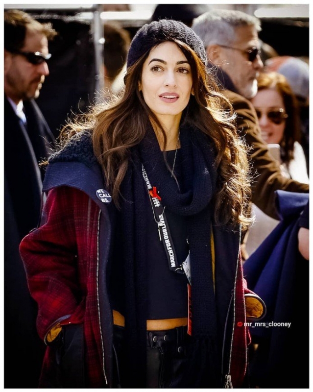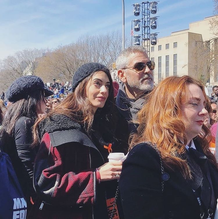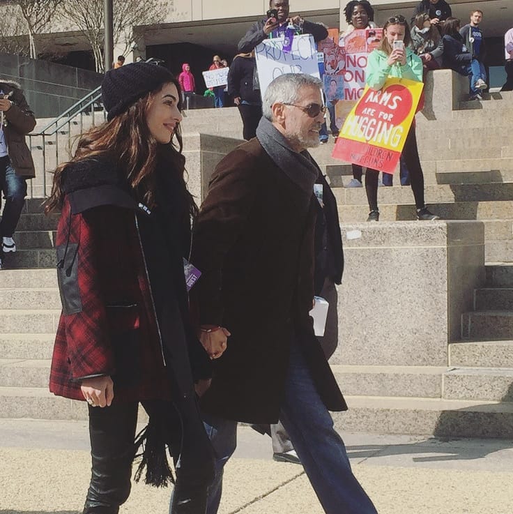 Семейная пара Джорджа и Амаль Клуни поддержала акцию и появилась на улицах города на радость их многочисленным фанатам. И если раньше совместный выход четы порождал разговоры о том, как сдал и постарел именитый актер, выход на марш стал поистине триумфальным для обоих супругов. Джордж и Амаль изрядно утеплились, выйдя на улицы Нью-Йорка, и выбрали лаконичную и удобную повседневную одежду. Пользователи интернета сочли, что Амаль выглядит потрясающе, свежа и хороша, Джордж светится от счастья, а также подметили схожесть между мужем и женой.