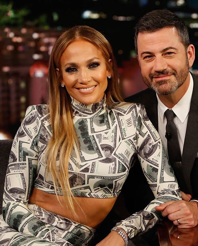 Американская R'n'B-исполнительница Дженнифер Лопес не перестает удивлять поклонников своим неповторимым стилем. На днях знаменитость пожаловала в гости на вечернее ток-шоу Джимми Киммела в пестром наряде, усыпанном долларами.