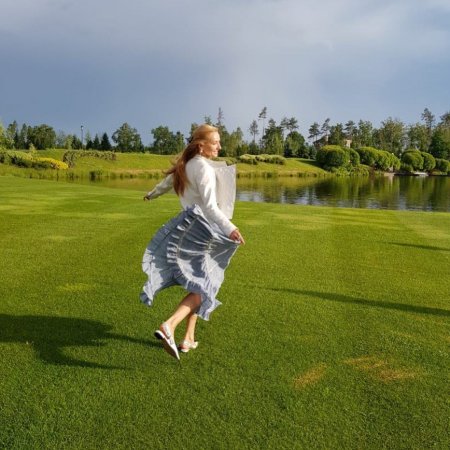 Супруг именитой фигуристки, олимпийской чемпионки Татьяны Навки Дмитрий Песков является пресс-секретарем президента России. Наверняка у него очень напряженный рабочий график, однако мужчина нашел время, чтобы собственноручно сделать несколько снимков любимой женщины. Татьяна позировала супругу на фоне зеленого луга и озера в нежно-голубом льняном сарафане и накинутой белой куртке. Волосы звезды фигурного катания были по-простому собраны на затылке. Навка предстала перед камерой мужа счастливой и жизнерадостной женщиной без лишнего пафоса, чем покорила комментаторов соцсетей.