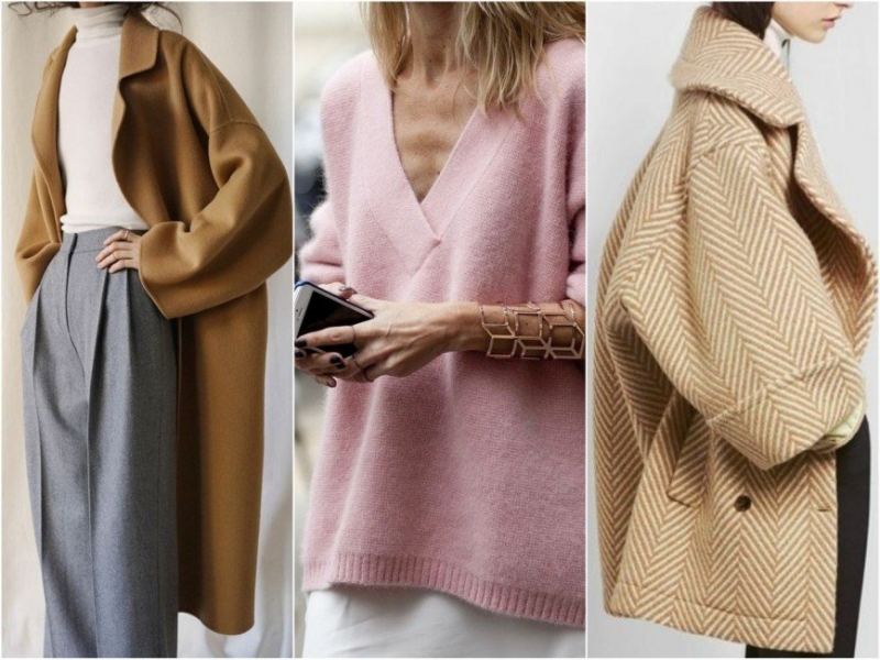 Конечно же, оверсайз любит натуральные материалы: кашемир, шерсть, хлопок. Так что, если присматриваете пальто на осень, обратите внимание на состав ткани. Как и в прошлых сезонах, продолжаем сочетать несочетаемые когда-то фактуры: шерсть + кашемир, кашемир + шелк, шерсть + кружево, кожа + кашемир.