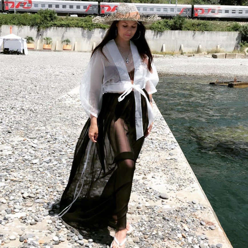 «Романтический образ можно создать и на пляже. А как легко и комфортно в такой одежде, знаем и я ветер», – поделилась премудростью Федорова, демонстрируя свои пляжные ансамбли.Прозрачную блузку, надетую поверх купальника, теледива дополнила летящей юбкой из такой же ткани. На голове знаменитости красовалась грубая соломенная шляпа – признанный маст-хэв этого лета, а ноги теледива обула в обычные вьетнамки. Ну а тем, кому прозрачный низ кажется слишком смелым нарядом, Оксана предложила поменять юбку на брюки легкого летнего фасона.