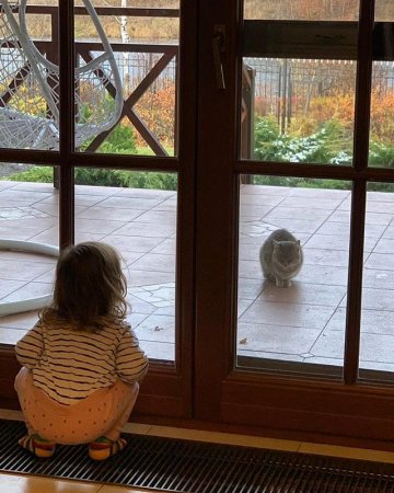 На новом снимке в микроблоге Гагариной Мия запечатлена за довольно трогательным занятием. Она играла в «гляделки» с кошкой. Присев на корточки у панорамного окна, ребенок сосредоточено наблюдал за серой кошкой, мерзнущей снаружи на холодной плитке террасы.Несмотря на умиление большинства подписчиков Полины, нашлись и те, кто счел певицу жестокой. «Пустите кошку в дом», - настойчиво требовали зоозащитники.