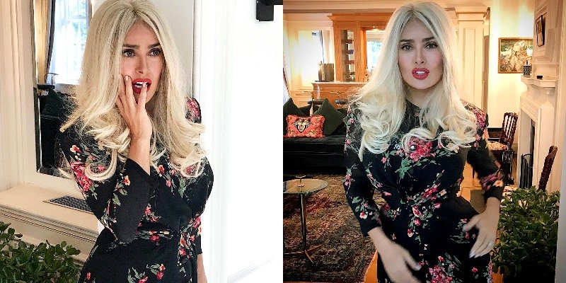 Хайек позировала перед камерой в обновленном виде и многие принялись обсуждать его уместность. Части подписчиков показалось странным сочетание черных бровей и смуглой кожи с белокурыми локонами и они не преминули высказать свои негативные мнения. Но были и более внимательные пользователи, которые сразу поняли, что Сальма просто в очередной раз примерила парик и не стала осветлять шевелюру.