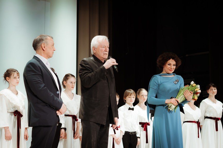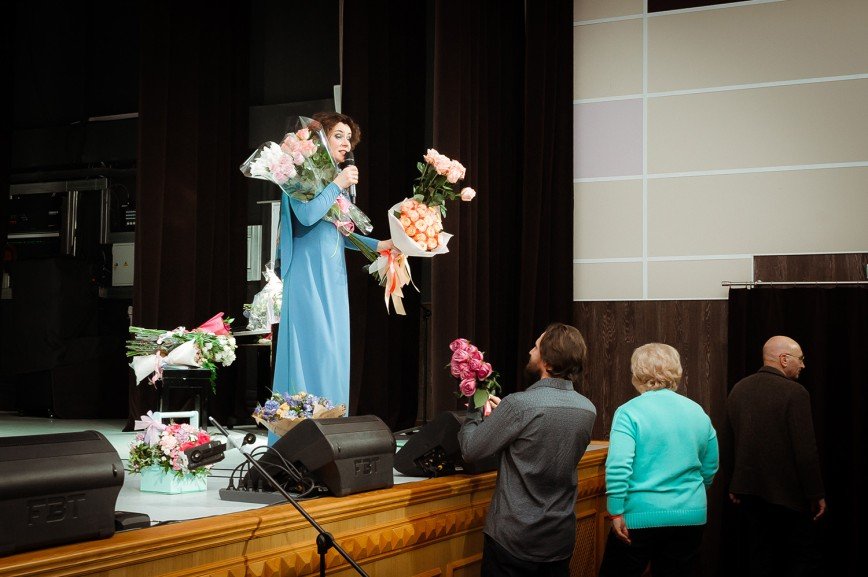 - Я хочу добавить несколько слов о той области работы Ларисы, которая мало кому известна, - сказала матушка. - Это работа с детьми. Работа эта не приносит какую-то известность и быстрых результатов, но требует огромного терпения большой любви. И Лариса отдает этому всю себя. Много лет она проработала в гимназии святителя Василия Великого, была режиссером-постановщиком балов с участием 300 детей и спектакли, проводила уроки, готовила детей к индивидуальным конкурсам чтецов. С такой же самоотдачей и жертвенностью она занимается нашим театральным кружком в нашей воскресной школе. Я думаю, дети смогут осознать значение этих встреч, только став взрослыми, но мы ей благодарны, мы ее полюбили всем сердцем. Я думаю, что Господь благословляет ее за эти труды, и одним из таких проявлений промысла божьего, видимо, стала встреча Ларисы Шахворостовой как раз в стенах воскресной школы с замечательным композитором Александром Ивановым, который является регентом нашего храма. Он написал музыку к шести фильмам, а сейчас работает над альбомом лирических и духовных песнопений, который выйдет к светлому празднику Пасхи. Песня «Впереди вечность» из этого альбома сейчас будет представлена.Эту композицию Лариса спела в сопровождении настоящих ангелов, в роли которых выступили девочки детского ансамбля им. Георгия Победоносца, а цветов от благодарных зрителей набралось столько, что выступление пришлось повторить на бис - на сей раз певица спела композицию дуэтом с композитором Александром Ивановым. В завершение вечера Лариса поблагодарила всех, кто помогал ей в подготовке концерта:- Я очень счастлива, что в зале не оказалось случайных людей. Радостно, что сегодня мне удалось собрать всех на 35-летнем юбилее творческого пути.