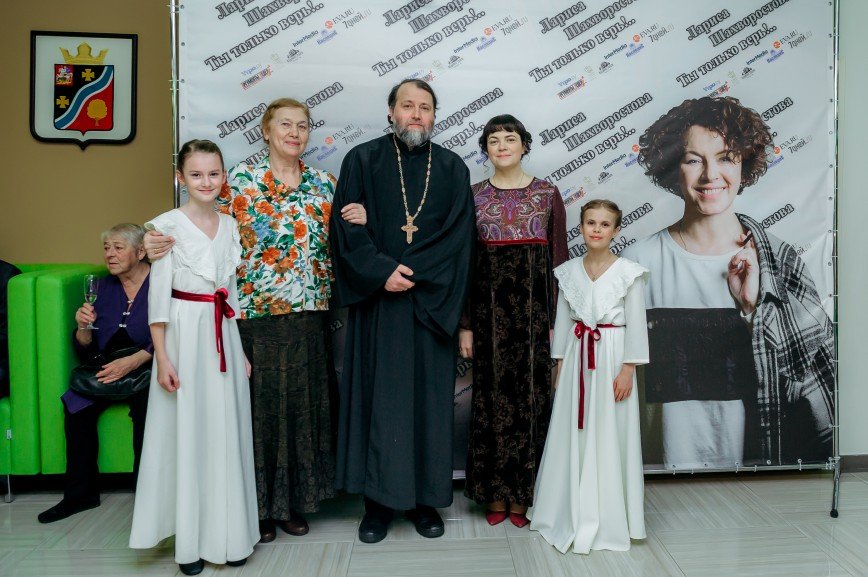 Затем на сцену вышли настоятель храма Покрова Пресвятой Богородицы в селе Перхушково Одинцовского района отец Андрей (Авраменко) и матушка Александра. Они рассказали о самоотверженной благотворительной работе актрисы с детьми и о том, что «с момента появления Ларисы в Храме появилось культурное наполнение», оказавшееся очень ценным для прихода. - Наверное, так Господь устроил, чтобы мы, встречаясь на этом пути, помогали друг другу. Актеры – они, наверное, особенно отвечают перед Богом за то, чтобы каким-то образом сопроводить нас в царствие небесное. Лариса такой человек – очень цельный, сильный, она иногда действительно вытаскивает нас из безнадежных ситуаций, связанных с всевозможными представлениями, культурной программой, которая должна приходом вестись. Господь нам ее послал, это такая милость, камень с души упал. И то, что она делает, фундамент ее творчества – это Христос, любовь к Христу. Матушка Александра представила композитора и поэта Александра Иванова, который написал песню «Впереди - Вечность».