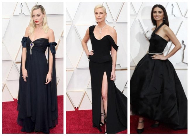 Многие знаменитости в этом году выбрали монохромные наряды: в черных платьях появились Марго Робби, Шарлиз Терон, Пенелопа Крус, а белые платья выбрали Сальма Хайек, Рене Зеллвегер, Скарлетт Йоханссон. Галь Гадот решила совместить два самых популярных цвета церемонии: она появилась в черно-белом кружевном платье с кружевным топом и белой юбкой.
