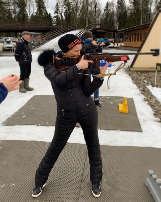 «Дебют в такой примечательный день, 8 Марта! Постреляли на биатлонном поле. И вот, с первого выстрела (в жизни!) из положения лежа попала в 5 из 5! Восторгу не было предела! Из положения стоя было прицелиться посложнее, получилось 4 из 5! А потом уже увлеклась тонкостями и деталями тренировки. Еще раз убеждаюсь, как же много зависит именно от тренера! Алексей ненавязчиво, но требовательно, тихим, но уверенным голосом «влюбил» в процесс, раскрыл «примочки»: стоим по второй джазовой позиции, «падаем» на бедро, приподнимаем локоть, делаем из пальцев «галочку». Отличная и удивительно комфортная позиция! Вперед, друзья! И девушкам рекомендую, так «перезаряжает»!» — поделилась впечатлениями Олеся в микроблоге.