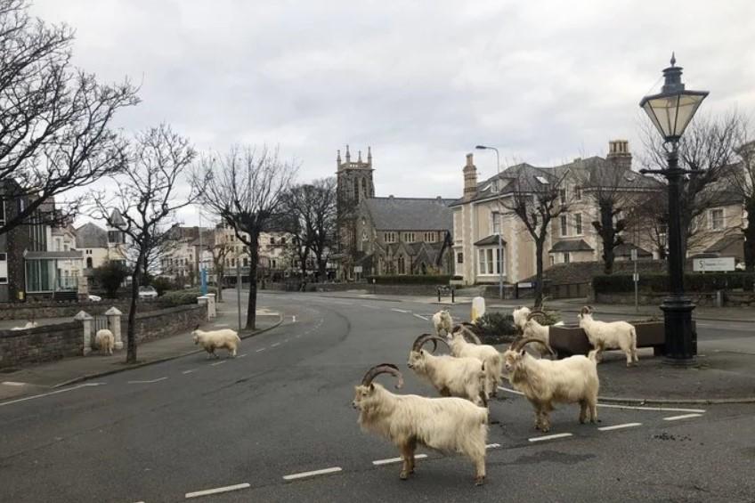 Опустевший из-за режима самоизоляции город в Уэльсе начали посещать неожиданные гости: стада горных козлов, до этого боящихся спускаться к поселениям людей, чувствуют себя полноправными хозяевами. Животные бродят по улицам, с аппетитом жуют живые изгороди, залезают на крыши домов и даже заходят в открытые двери.