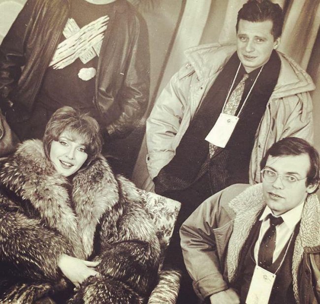 «Вот, что значит — много свободного времени! Мой старый знакомый Саша Герасимов (он в центре композиции) прислал только что вот эту фотографию! Господи, как же это было давно! Но я сразу же опознала всех, включая куртку без головы! Итак: Андрей Батурин (как раз без головы), я, Саша Герасимов (актер и режиссер ) и замечательный композитор Юрий Потиенко! Сейчас самое время разбирать архивы, шкафы, мысли!»