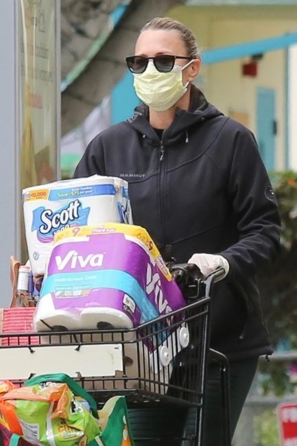 Видимо, Робин планирует в ближайшее время оставаться дома и не выходить на улицу: она запаслась всем необходимым, а одну тележку под завязку наполнила упаковками с туалетной бумагой. Кажется, этот товар во время пандемии стал одним из самых популярных во всех странах.