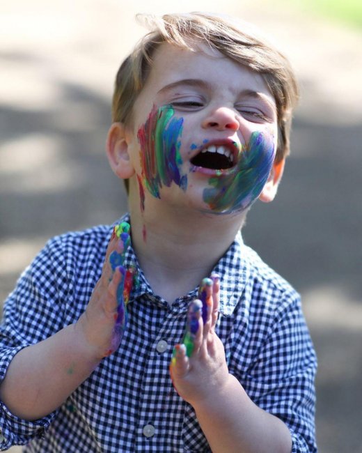 Но в честь дня рождения Луи в официальном микроблоге появилась серия новых снимков принца. На фотографиях счастливый малыш демонстрирует руки, перепачканные цветными красками. Как сообщила Кейт, незадолго до съемки Луи решил оставить на листе бумаги отпечаток своих ладошек. Увидев, что это занятие очень воодушевило принца, герцогиня поспешила запечатлеть его. Поклонники королевской семьи заметили, что сделанные снимки совершенно не уступают работам профессиональных фотографов.
