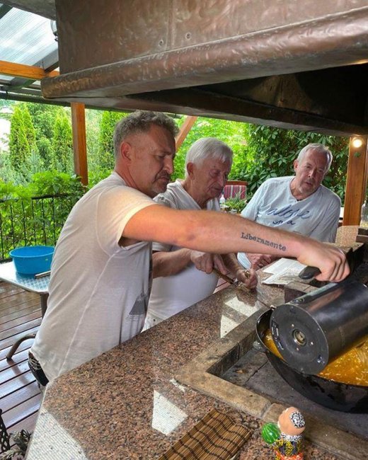 Музыкант Андрей Макаревич пригласил сняться в шоу «Смак», которое выходит на Ютуб-канале, отца и сына Агутиных. Леонид и Николай Петрович, облачившись в белые футболки, пришли к коллеге приготовить настоящий узбекский плов. Радостным событием Леонид Агутин поделился в Инстаграм-аккаунте, порадовав совместными фотографиями с папой и ведущим программы.
