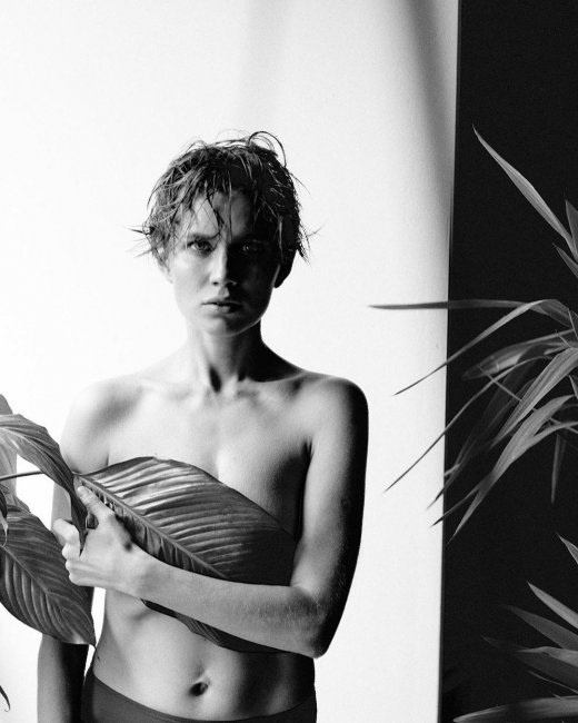 На фото актриса позировала обнаженной, прикрыв грудь листом комнатного растения. Ее короткие волосы стилисты уложили нарочито небрежно, не стали они использовать и яркий макияж, сосредоточившись на естественной красоте Дарьи.