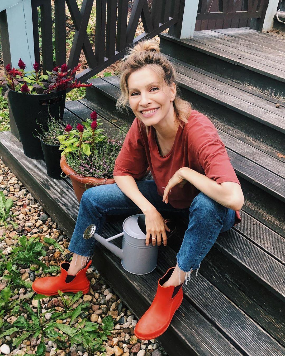 Стала звезда откровеннее и в вопросах о жизни вне съемочной площадки. Оказалось, Подкаминскую часто спрашивают, как она все успевает? Оно и не удивляет: артистка воспитывает маленьких детей, очень быстро пришла в привычную физическую форму после родов, участвует в пробах и ездит с малышом по делам. Елена решила ответить фанатам под кадрами в стиле садовода-любителя: в резиновых ботинках и с лейкой.