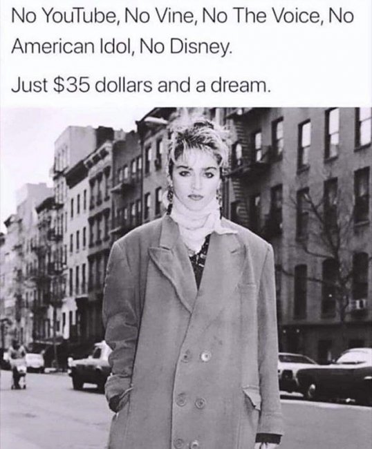 В комментарии Мадонна дописала: «Ни Инстаграмма, ни Твиттера, ни ТикТока». Действительно, современные звезды уже мало понимают, как раскручиваться без социальных сетей, но Мадонна о раскрутке и пиаре знает все! Попробуйте сегодня пробиться с бюджетом в 2,5 тысячи рублей! Упорству и силе у артистки точно стоит поучиться.