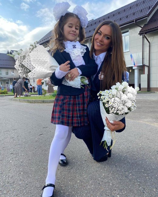 Красавица Татьяна Терешина сопроводила на линейку дочь Арис, которую родила в браке с диджеем Славой Никитиным. Первоклассница с радостью позировала на школьном дворе с букетом цветов и белоснежными бантами на волосах.