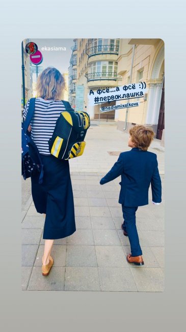 Надежда Михалкова, которая старается не показывать своих детей, сегодня сама помогла донести рюкзак сыну Ивану. Правда, в социальной сети ограничилась фото наследника со спины.