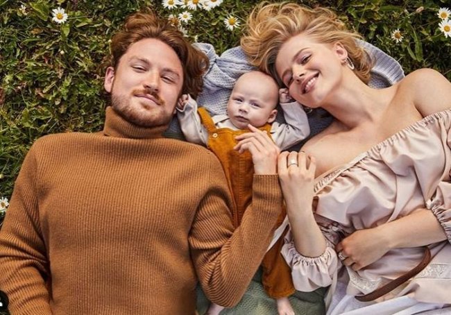 Однако сегодня актриса поделилась в социальной сети трогательным фото с супругом и новорожденным сыном. На снимке Александра и ее муж Евгений Савельев лежат на траве, склонив головы к малышу.