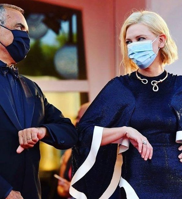 Знаменитости приветствовали друг друга с помощью касания локтями, а папарацци наблюдали за церемонией со специальных точек. Однако число фотографов было ограничено, в то время как доступ для зрителей, собирающихся обычно у Дворца кино, и вовсе закрыли.На фотоколле вчера можно было видеть Кейт Бланшетт, Тейлор Хилл и Тильду Суинтон, выбравшую позолоченную маску в качестве меры защиты. Впрочем, в зале актриса уже присутствовала в обычной белой медицинской маске на лице.