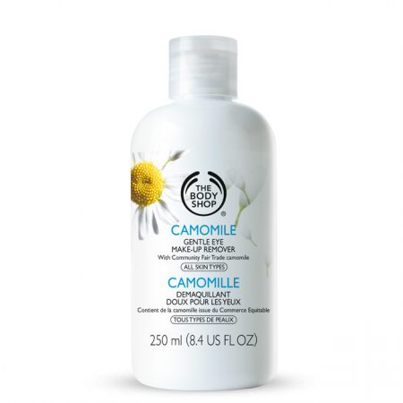 Средство для снятия мейкапа с глаз «Ромашка», The Body Shop Лосьон с эфирным маслом ромашки за считанные секунды устраняет мейкап с век и ресниц, сразу освежая и успокаивая нежную шкуру вокруг глаз. Идеально подходит для чувствительной кожи и для жителей нашей планеты, использующих контактные линзы. Не содержит отдушек и красителей.