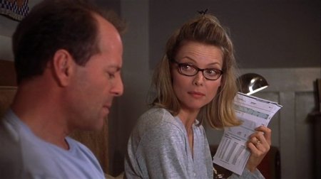 Яркий, сочный, красочный и невероятно трогательный кинофильм о том, как тонны каждодневных сердящих мелочей равномерно накапливаются в разрушительный «снежный ком» обоюдных обид и недопонимания, приводящий к великолепно сыгранным и Мишель Пфайффер, и Брюсом Уиллисом истерикам. Это и есть тот самый быт, разбивающий несчастную «лодку любви».Разрисованная вуаль