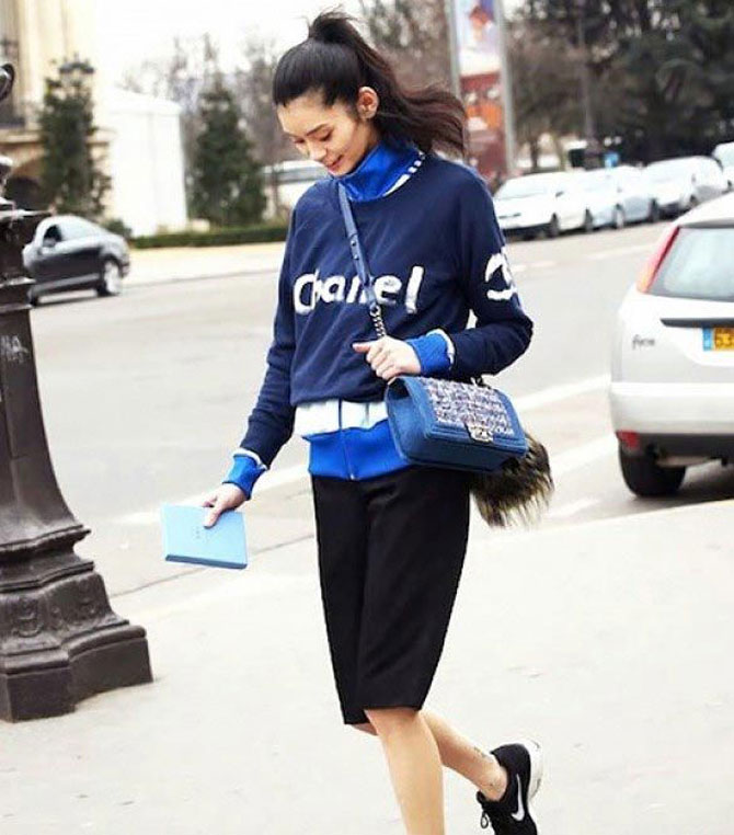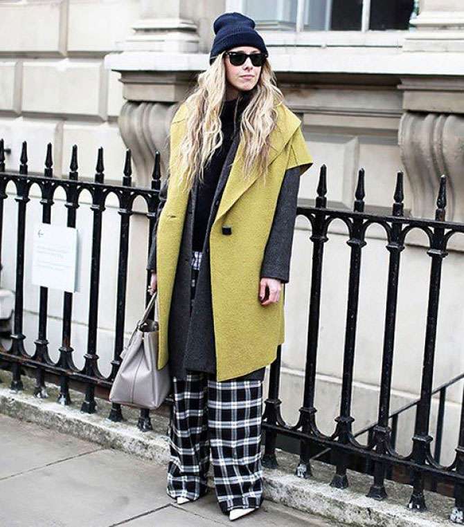 Чтобы создать иллюзию высочайшего роста, носите широкие штаны из плотной тканиГоризонтальные полосы
