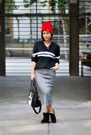 Либо используйте вертикальную полосу, которая будет растягивать вас, или не используйте её вообщеЮбки миди