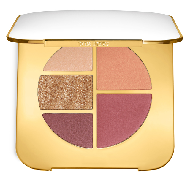 TOM FORD EYE AND CHEEK COMPACTНовая версия палетки Tom Ford Eye & Cheek Compact in Pink Glow состоит из трех оттенков теней и двух оттенков румян и идеально подходит для создания чувственного образа. Золотисто-фиолетовая дымка окутывает глаза словно вуалью, а скулы подсвечены сиянием розового золота, эффект которого усиливается при помощи яркого сливового румянца.