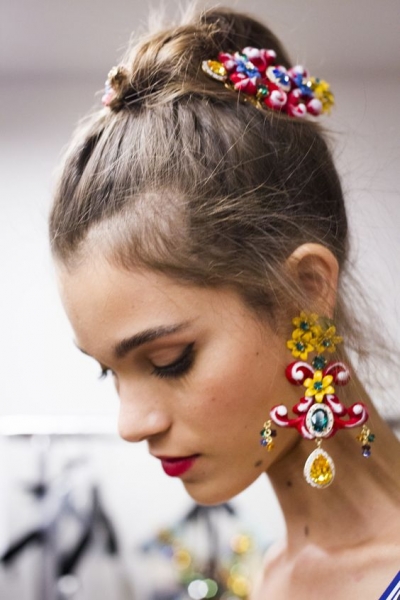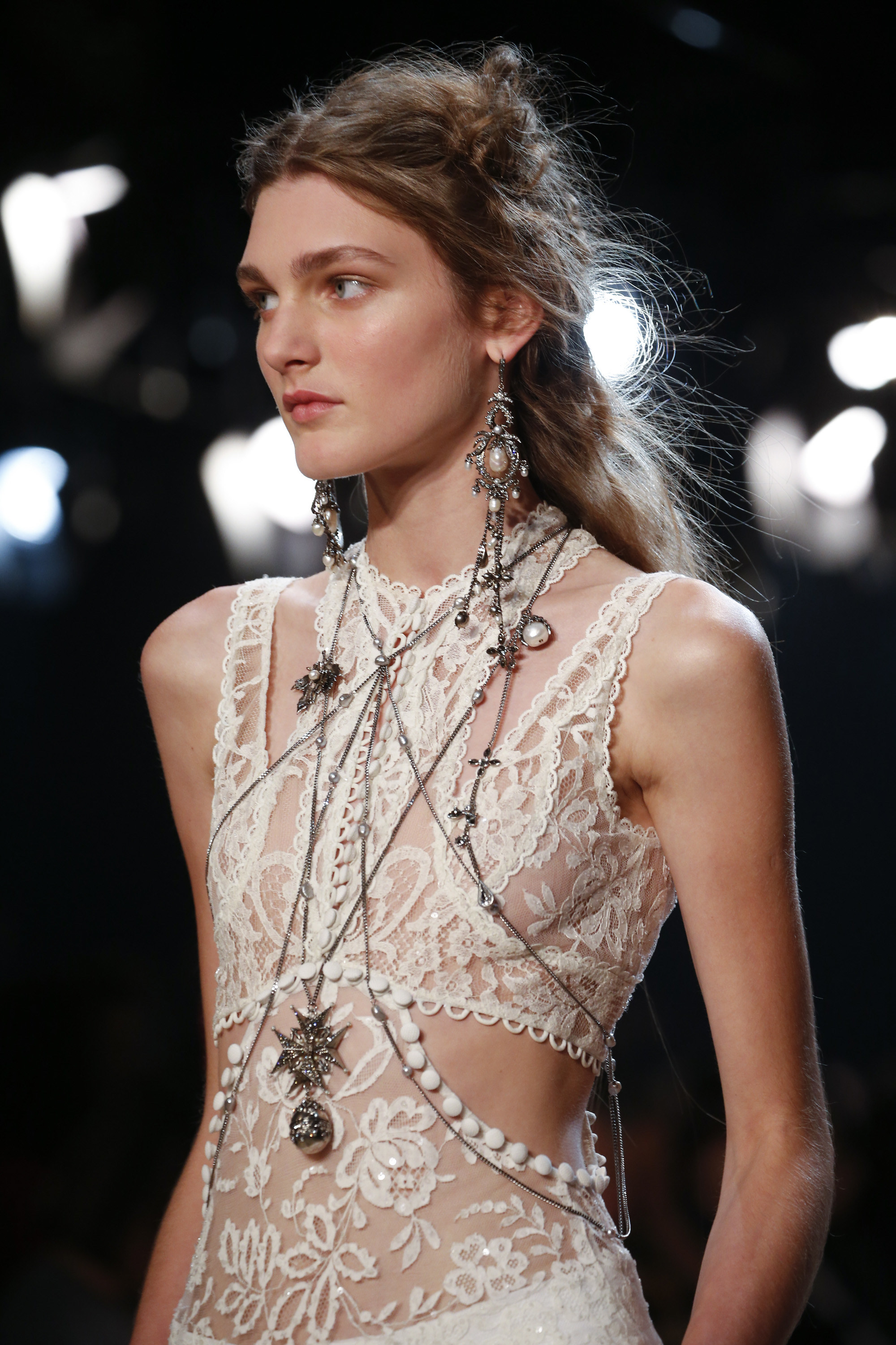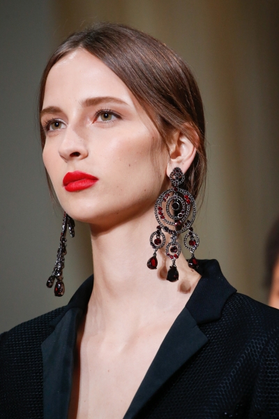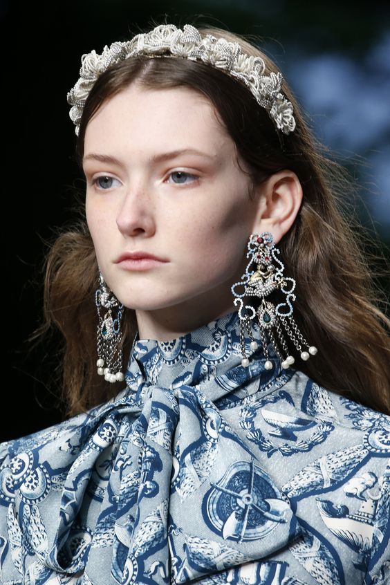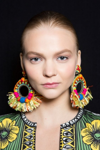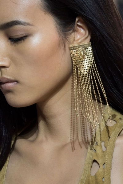 Основное правило – серьга должна быть крупной и заметной. Emilio Pucci предлагает футуристические мотивы, Alexander McQueen вдохновился старинными украшениями, а Roberto Cavalli и Loewe создали дерзкие и увесистые серьги из металлического плетения с украшения, напоминающие птиц.