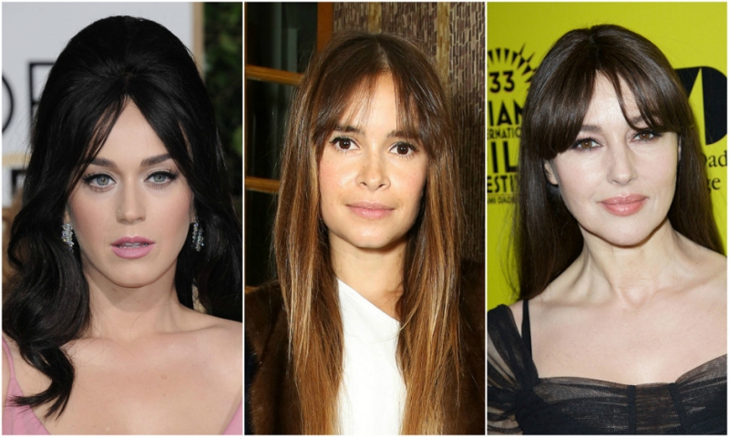 Челка, уложенная на две стороны, уже стала визитной карточкой американской певицы Кэти Перри, российской обозревательницы моды Мирославы Думы, итальянской актрисы Моники Беллуччи.