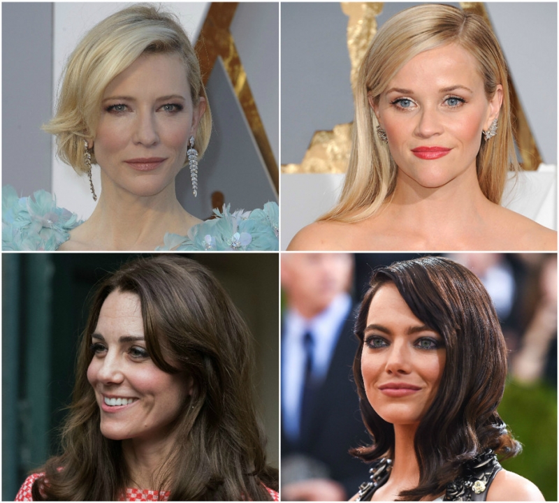Голливудские актрисы Кейт Бланшетт, Риз Уизерспун и Эмма Стоун, а также герцогиня Кембриджская Кейт Миддлтон предпочитают слегка отращивать челку и эффектно укладывать ее набок.