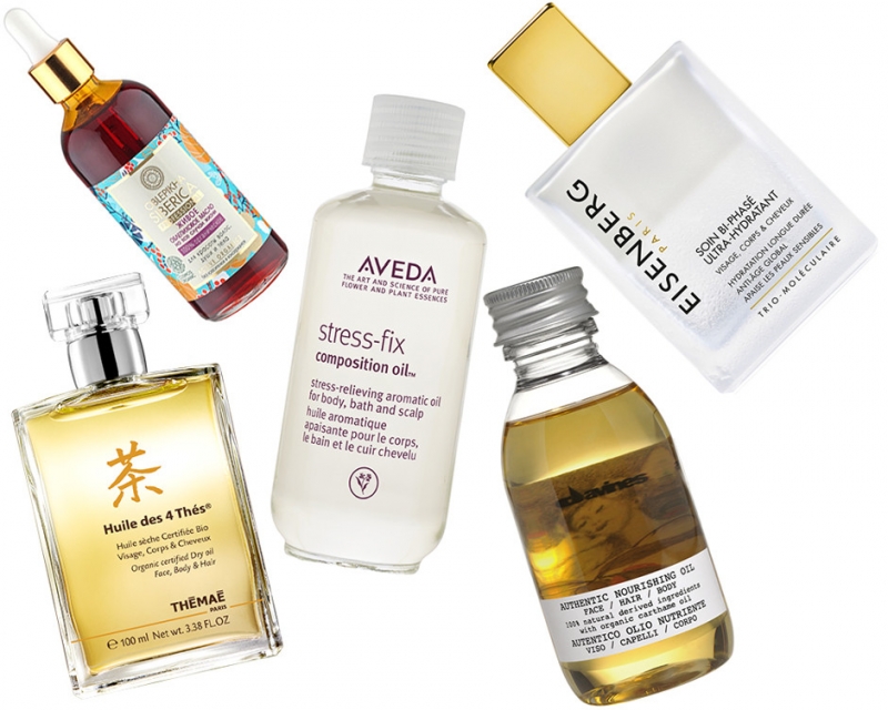 Soin Bi-Phase Ultra-Hydratant, EisenbergAuthentic Nourishing Oil, DavinesSterss Fix, AvedaHuile des 4 Thes, Themae«Живое облепиховое масло», Natura Siberica