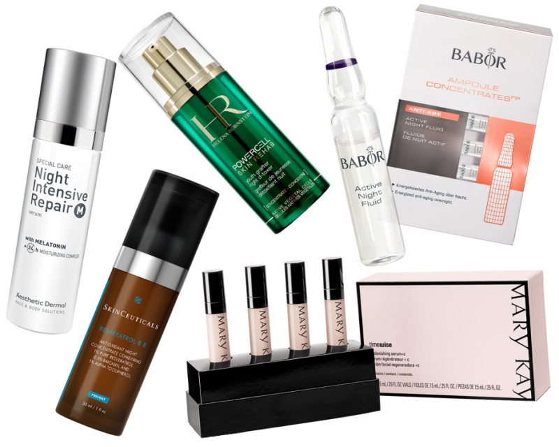 Интенсивно восстанавливающая ночная сыворотка с мелатонином, Aesthetic Dermal, Ночной деток-концентрат Powercell Skin Rehab, Helena RubinsteinАнтиоксидантный ночной концентрат Resveratrol B E, SkinCeuticalsАнтивозрастной ночной флюид в ампулах Active Night Fluid, BaborВосстанавливающая ночная сыворотка Timewise, Mary Kay