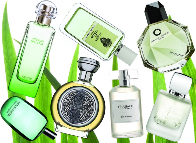 Зеленые ароматы: Un Jardin sur le Toit, Hermes; Mentha Citrata, Acqua di Stresa; Francine, Francesca Dell"Oro; Amazingreen, Comme des Garcons; Delicate, Boadicea The Victorious; Eau de Source, Chabaud; Allegria, Rouge Bunny Rouge.