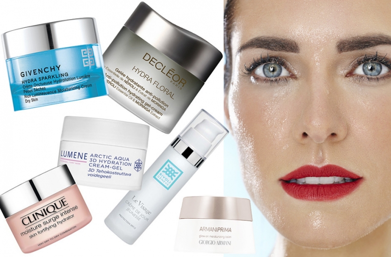 Увлажняющие кремы: Hydra Sparkling, Givenchy; Hydra Floral, Decleor; Moisture Surge Intense, Clinique; Arctic Aqua 3D Hydrating Cream-Gel, Lumene; Le Visage, Rivoli Geneve; Armani Prima Glow-On Moisturizing Balm, Giorgio Armani.