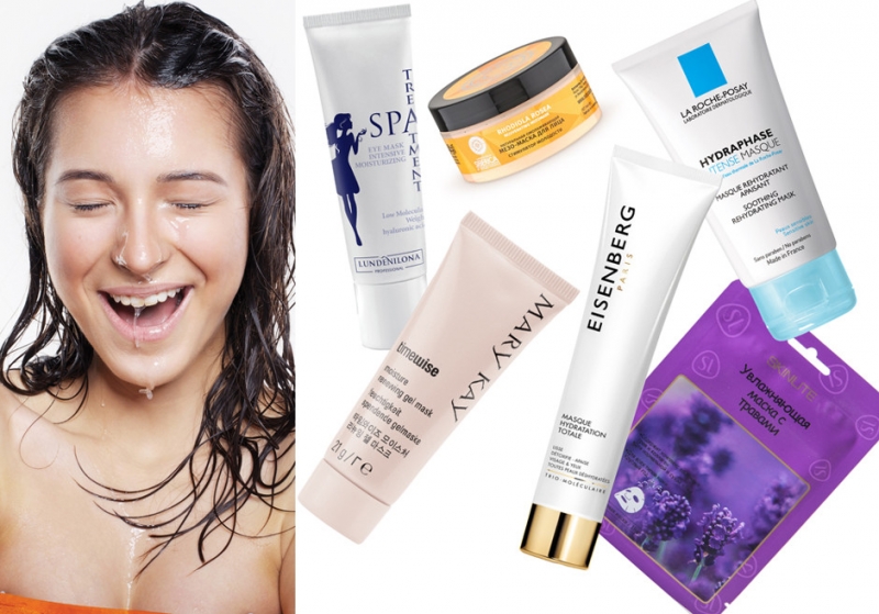 Увлажняющие маски: для век Eye Mask Intensive Moisturizing, Lundenilona; мезомаска Rhodiola Rosea, Natura Siberica; Timewise, Mary Kay; Masque Hydration Totale, Eisenberg; Hydraphase Intense Masque, La Roche-Posay; «Увлажняющая маска с травами», Skinlite.