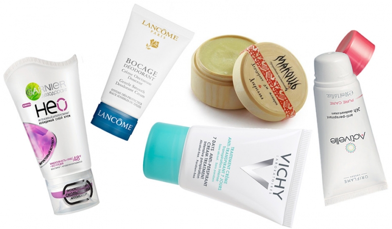 Кремовые дезодоранты: Neo «Фруктовый всплеск», Garnier; Bocage, Lancome; «Доброслава», «Макошь»; 7 Days Antiperspirant Cream Treatment, Vichy; Actively, Oriflame.