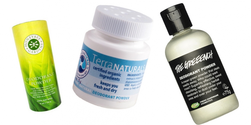 Дезодорант-пудра: Honey Bee Gardens; Terra Naturals; The Greench, Lush.