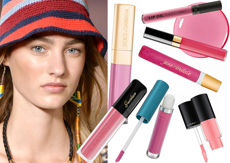 Блеск для губ: Lip Oil, 004 Raspberry, Gosh; Lipgloss, 57 Bonbon, Dolce & Gabbana; Levres Scintillantes, Adenium, Chanel; Pure Lipgloss, Sugar Plum, Jane Iredale; Guerlain; Gloss d'Enfer, 440 Coral Wizz, Guerlain; «Незабываемая защита от солнца» SPF 35, Colorscience.