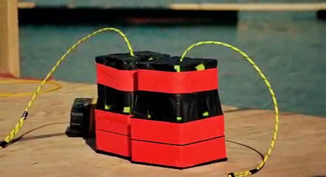 По доли разнести что-нибудь в клочки Джейми и Адаму нет одинаковых. Ну и, конечно, два взрыва — это постоянно лучше, чем один. Правда, на этот разов обычный краш-тест-манекен остался без работы. Его заменили датчиками, измеряющими давление взрывной волны. На озере была сконструирована платформа с измерительными устройствами, на одинаковом расстоянии от нее поставили динамитные шашки и — ба-бах!!!Разрушители предались собственному излюбленному занятию.