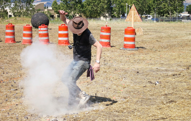 Наконец все готово: взрывной механизм запущен, кар залит цементом под завязку, картонные силуэты с претенциозными прическами поставлены вокруг. Три, два, один!Раздается невозможный взрыв, который разносит по полигону кусочки картона, жести и причесок!Контрольный разнос фургончика без цемента подтверждает: представления о взрывчатых веществах у сценаристов «Макгайвера» кардинально расползаются с реальностью. Оба опыта не оставляют никаких шансов городской улице.
