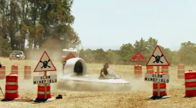 Первым делом Адам решает, что он сам поведет транспортное средство в бой. Увы, это значит, что мины будут ненастоящими. Впрочем, Джейми удается сконструировать вполне правдоподобную подмену с контролируемым пусковым механизмом, который можнож выставить на различную ступень давления. Мины «взрываются», испуская клубы дыма и фонтанчики грязищи, при всем этом их можнож опять и снова заряжать для повторных испытаний. Все это дает Адаму шанс не совершенно лишь покататься по испытательному минному полю на катере, но и пробежаться по нему с завязанными очами!