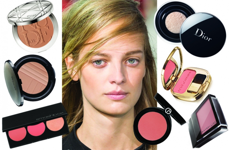 Пудра: Diorskin Nude и Diorskin Forever Poudre Libre, все Dior. Румяна: Cheek Blush, Sensai; L.A. Lights, Smashbox; Cheek Fabric Palette, Giorgio Armani Beauty; The blush Luminous Cheek, Dolce & Gabbana; Studio Master Blush, Maybelline.