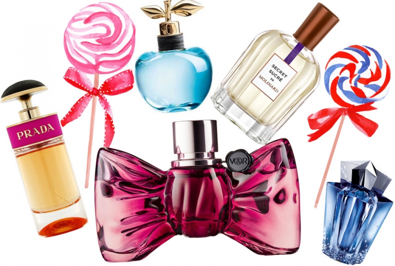 Ароматы с нотой карамели: Candy, Prada; Nina Luna, Nina Ricci; Bonbon, Victor & Rolf; Secret Sucre, Molinard; Angel, Thierry Mugler.