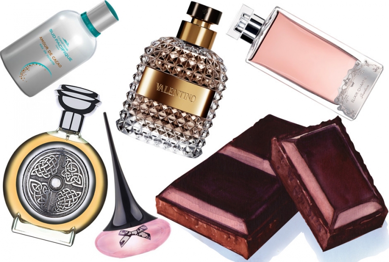 Ароматы с нотой шоколада: Amur de Cacao, Sud Pacifique; Invigorating, Boadicea The Victorious; Love Potion Secrets, Oriflame; Valentino Uomo, Valentino; Elixir Charnel Gourmand Coquine, Guerlain.