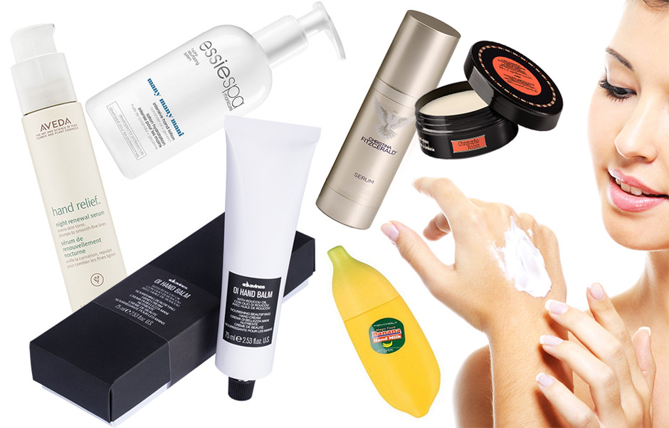 Для рук: ночная сыворотка Hand Relief, Aveda; лосьон Many Many Mani, Essie Spa; бальзам OI Hand Balm, Davines; молочко Banana Hand Milk, Tony Moly; сыворотка Radical, Christina Fitzgerald; регенерирующий бальзам, Christophe Robin.
