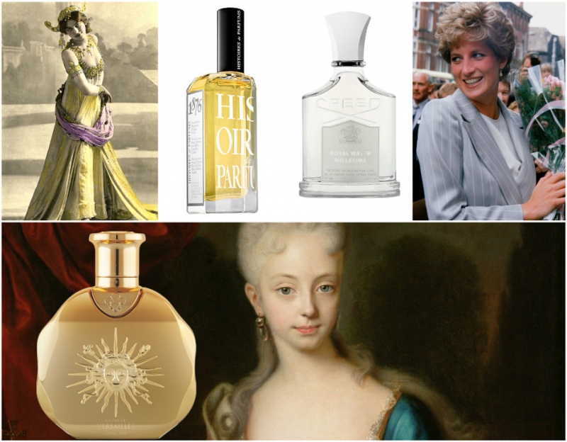 Мата Хари и 1876, Histoires de Parfums; принцесса Уэльская Диана и Royal Water, Creed; Мария Тереза, будущая жена Людовика XIV и Les Ors de Versalles, Parfums du Сhateau de Versailles;