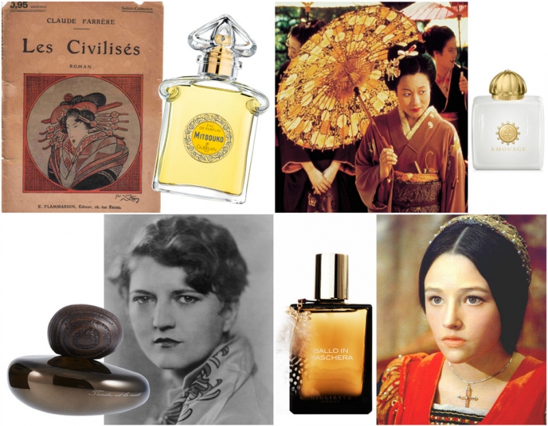 Но самые известные персонажи, в честь которых выпускали ароматы, — Йорисака Мицуко, героиня романа «Битва» Клода Фаррера (Guerlain Mitsouko) и мадам Баттерфляй из одноименной оперы Джакомо Пуччини (Amouage Honour Woman).