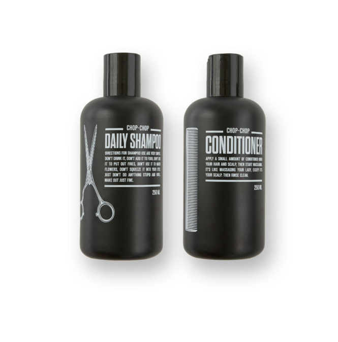 Они настолько поднаторели в этом деле, что точно знают, чем должен пахнуть мужчина, как ему мыть голову, и что втирать в щеки. Весь свой опыт и знание мастера Chop-Chop поместили в несколько удобных емкостей — с фирменными шампунем, кондиционером, бальзамом после бритья.