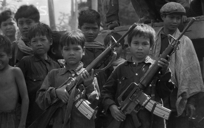 Они атаковали южновьетнамские войска, после чего тикали в Камбоджу, на границе которой их преследователи были вынуждены останавливаться и жалобно глядеть на веселые дымки над очагами вьетконговских баз. Надо сказать, что местное население не было в восторге от бегающих по их стране вьетнамских солдат. Кроме того, им очень не нравилось, что Сианук считал возможным посылать своих солдат отбирать у крестьян зерно (точнее, насильно выкупать его за копейки). Неудивительно, что собственное коммунистическое подполье Камбоджи стало пользоваться огромной поддержкой начинавших голодать крестьян. Самая крупная из таких организаций называлась «Красные кхмеры», и руководил ею милый школьный учитель по кличке Пол Пот. Да, он так и не стал ярким лидером и гением, за которым пошли бы серьезные зрелые революционеры, зато он умел хорошо работать с детьми. Под свое крыло он, как и положено учителю, принимал юношество: в красные кхмеры набирали крестьянских подростков 11—12 лет, а сам Пол Пот неоднократно говорил, что для блага Кампучии надо было бы убить всех, кто старше четырнадцати, так как только новое поколение способно создать новую идеальную страну.